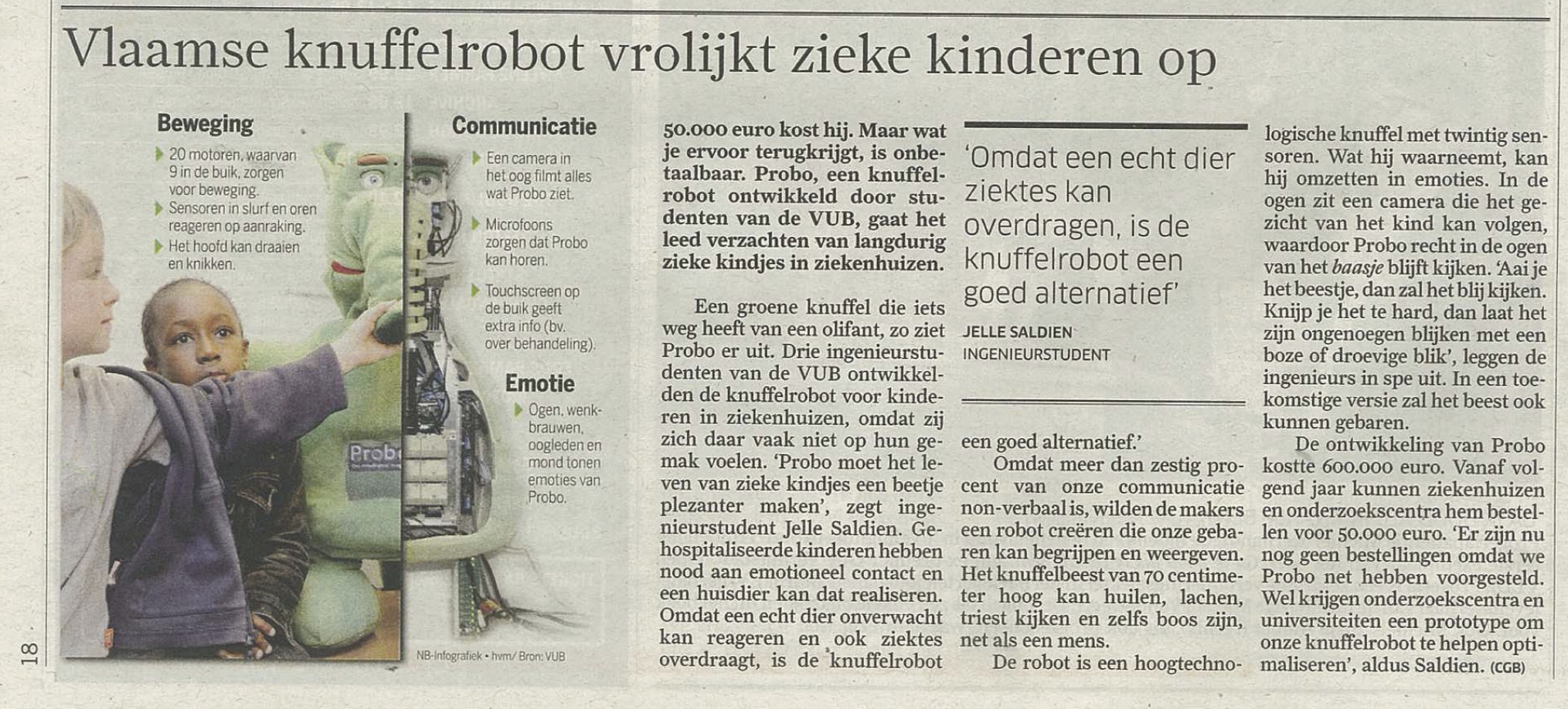 13 December 2005 - De Standaard - page 9 - "VUB bouwt knuffelrobot"